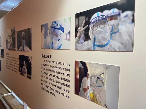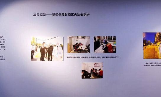 展覽分為“集結(jié)號(hào)角、守望相助、志愿行動(dòng)、居家堅(jiān)守、美好愿景”五個(gè)部分;整個(gè)展覽記錄了四季青鎮(zhèn)從開(kāi)展區(qū)域核酸檢測(cè),到封控區(qū)順利解封,每一個(gè)讓人難忘的感動(dòng)瞬間。尤其是西冉村實(shí)行封控管理期間,正值炎炎夏日,每一位工作人員身著嚴(yán)密的防護(hù)服,這些照片真實(shí)見(jiàn)證了四季青鎮(zhèn)千千萬(wàn)萬(wàn)抗疫人奮戰(zhàn)“疫”線(xiàn)的每一個(gè)瞬間,承載著他們的智慧和汗水。