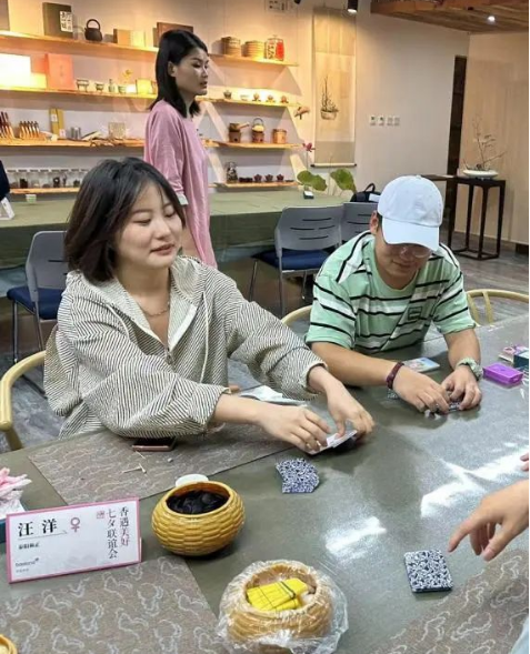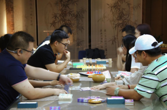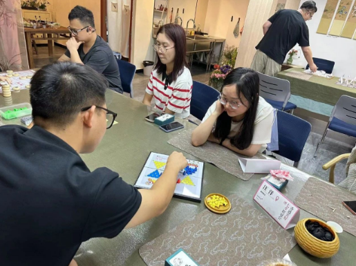 活動(dòng)設(shè)置了“香牌制作、棋牌游戲”等趣味互動(dòng)游戲。在香牌制作的活動(dòng)中,木緣空間主講老師從代表性的香料及香具的運(yùn)用到香牌的配方和制作工序,輕聲細(xì)語(yǔ)娓娓道來(lái)。隨后,老師分發(fā)調(diào)配好的香粉和粘土,安排大家以小組為單位參加比賽,大家互幫互助共同完成了作品,獲勝者獲得了古琴試聽(tīng)課。